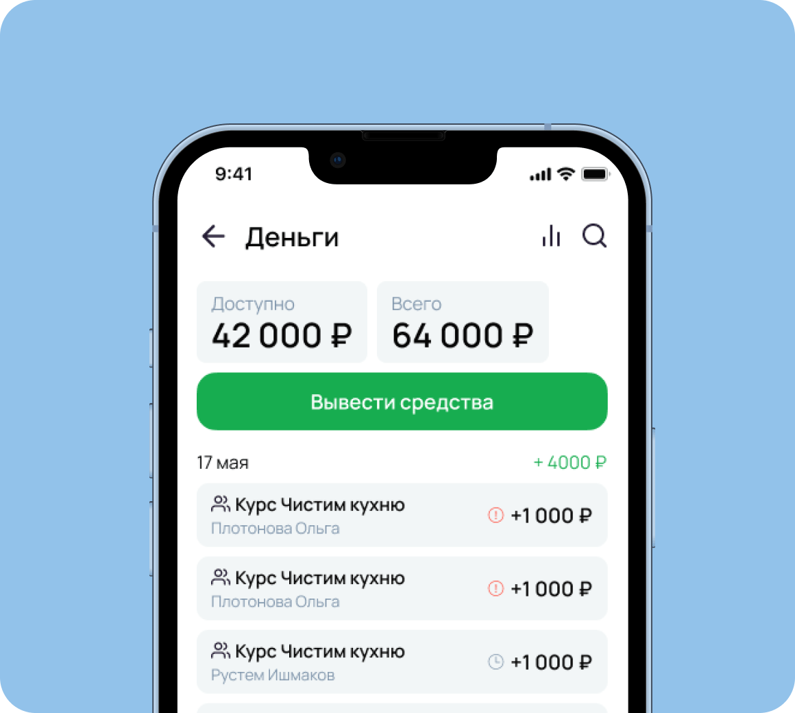 Вы сможете собирать статистику по успешности ваших курсов и марафонов у учеников