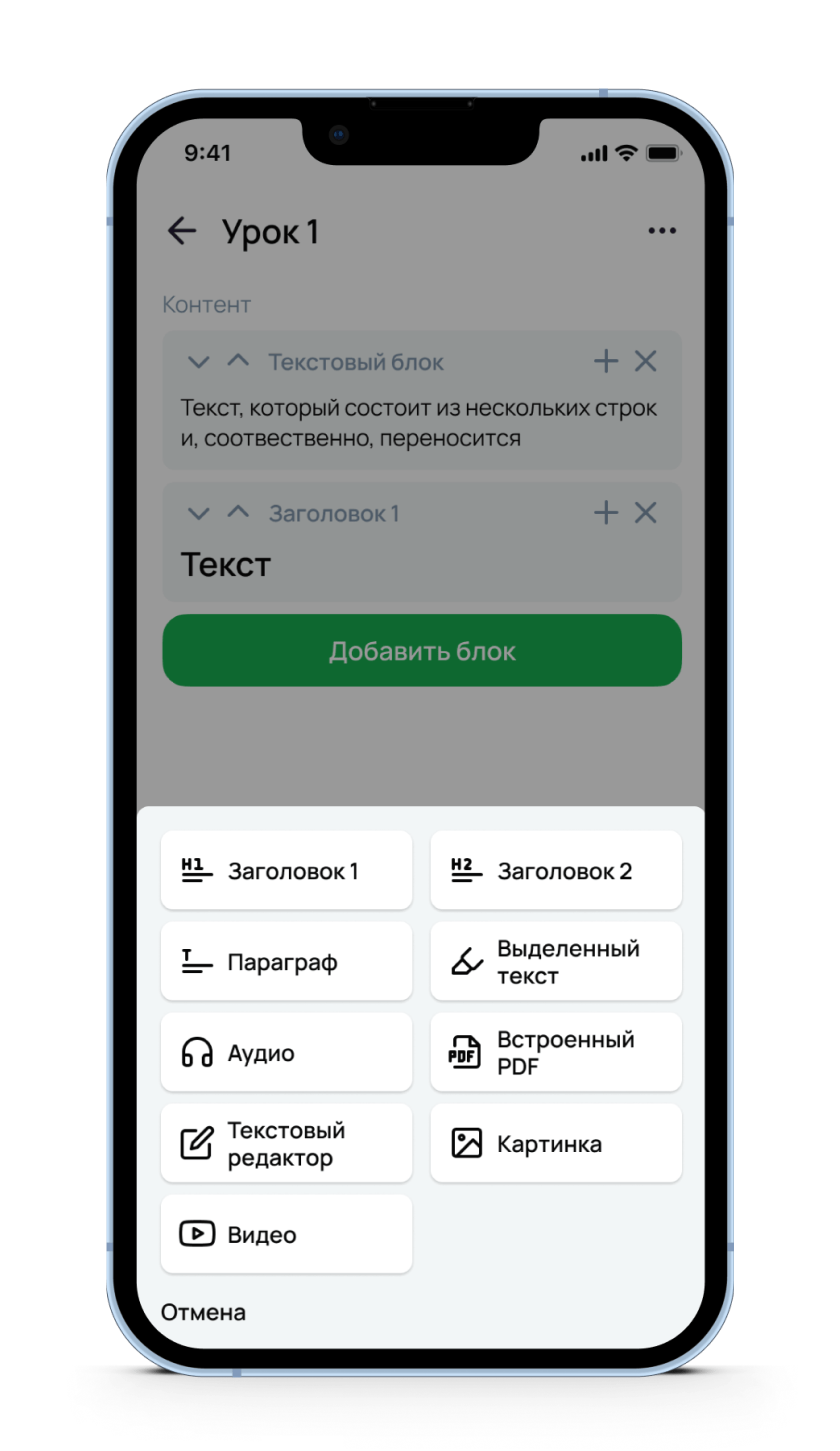 — Создайте уроки при помощи конструктора, добавьте задания и тесты